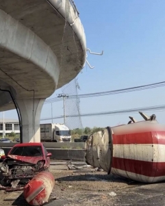 เลี่ยง กม.32 บางนา-ตราด (ขาเข้า) รถโม่ปูนตกสะพานกลับรถ รถติดสะสมหนัก เจ้าหน้าที่กำลังเร่งช่วยเหลื